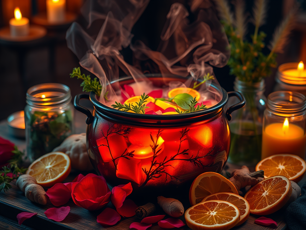 - A simmer pot ritual aligned with magical intentions (protection, self-love, justice, shadow work)